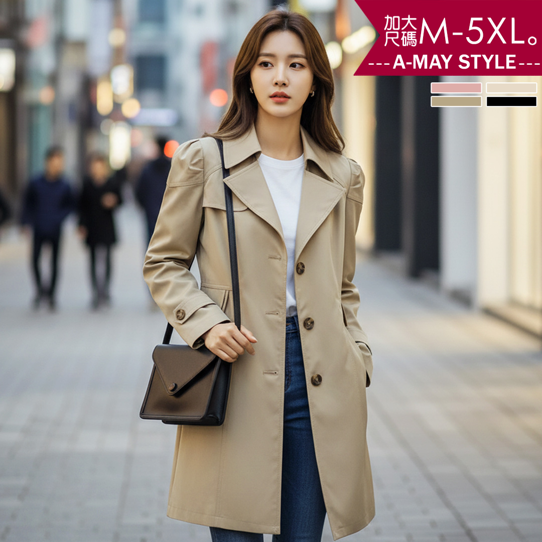 中大尺碼風衣 翻領英倫風中長版風衣外套 M 5xl 艾美時尚 艾美時尚